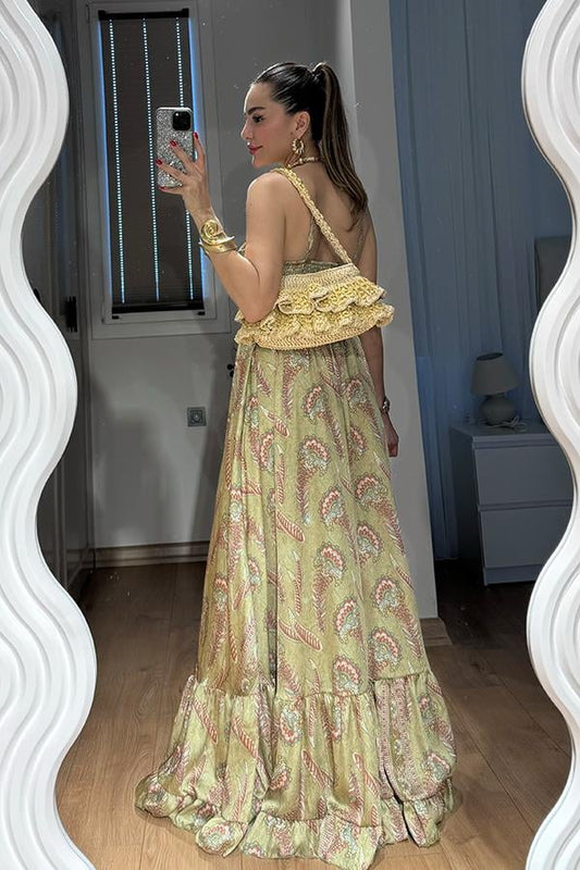 3 AL 2 ÖDESare Desenli Saten Yeşil Elbise