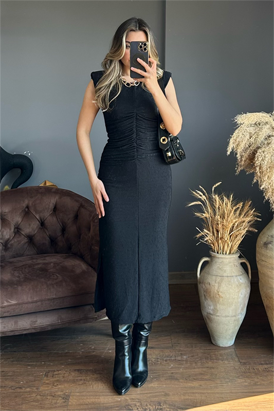 3 AL 2 ÖDESiyah vatkalı yırtmaçlı elbise