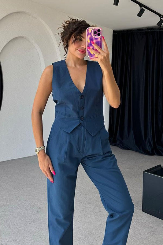 3 AL 2 ÖDESkylar Petrol Mavi Pantolon Yelek Takım