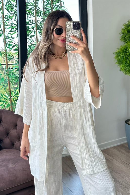 3 AL 2 ÖDESoary krem kimonolu bohem takım