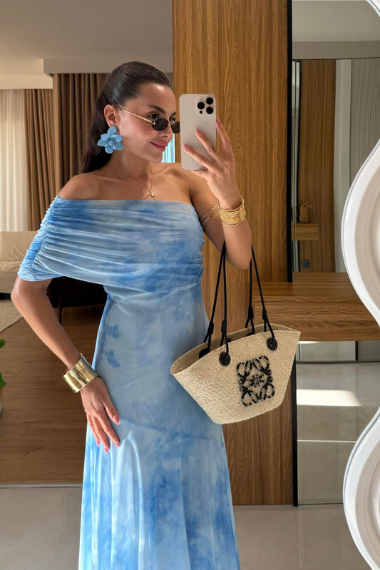 3 AL 2 ÖDESophya Mavi Desenli Uzun Elbise