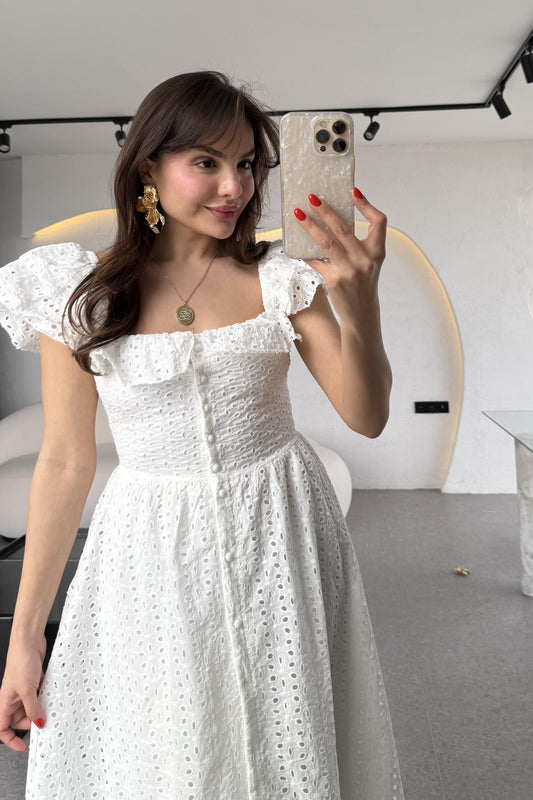 3 AL 2 ÖDESunset Beyaz Maxi Düğmeli Fisto Elbise