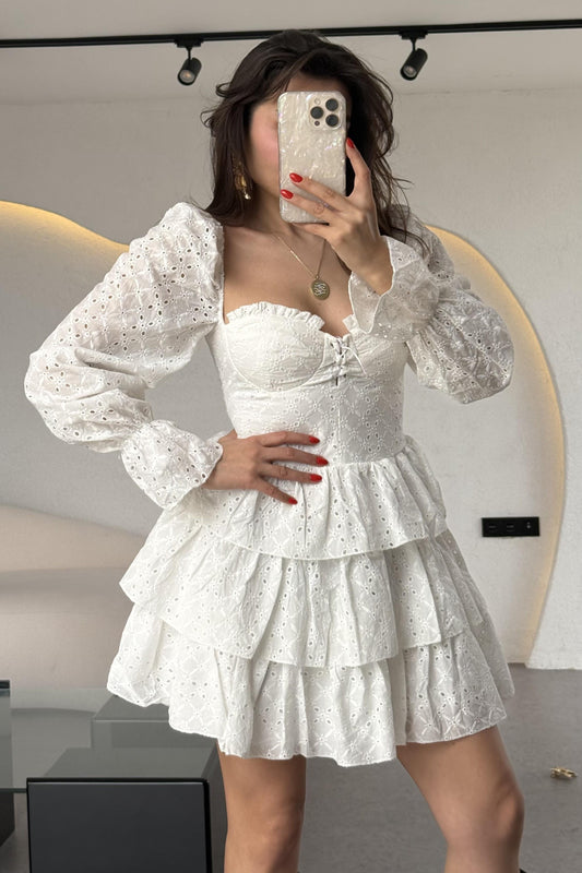 3 AL 2 ÖDESunset Beyaz Mini Fisto Elbise