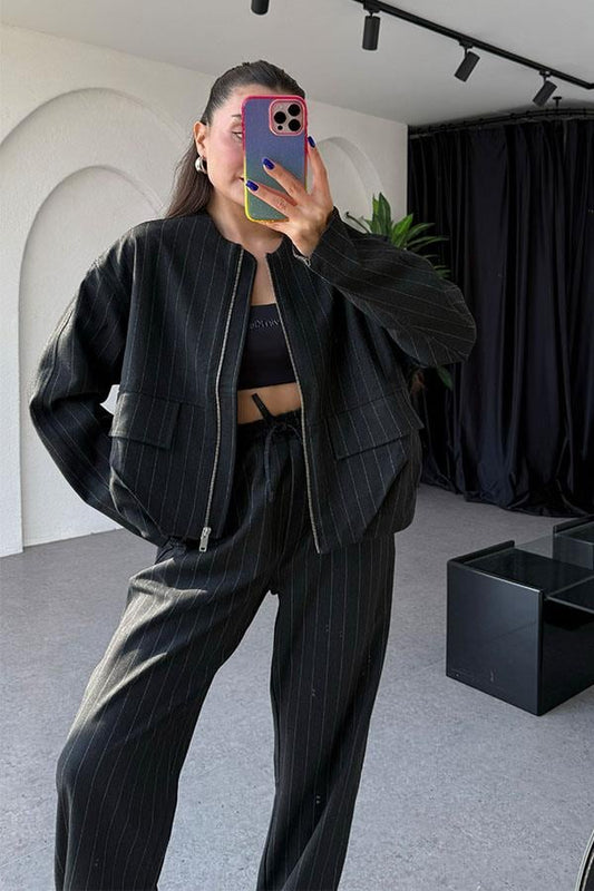 3 AL 2 ÖDESusie Bomber Ceketli Siyah Çizgili Takım