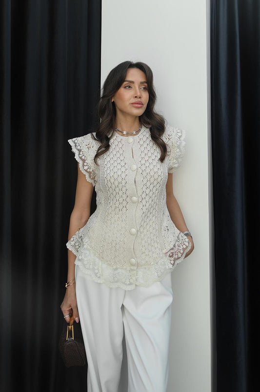 3 AL 2 ÖDETAŞ RENGI ÖRME DANTEL DETAYLI YELEK