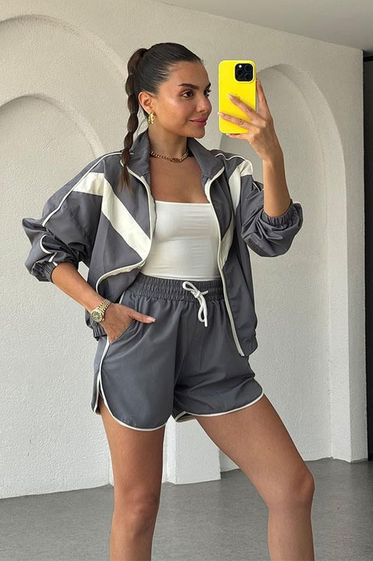 3 AL 2 ÖDETatum Şortlu Eşofman Takım-Füme