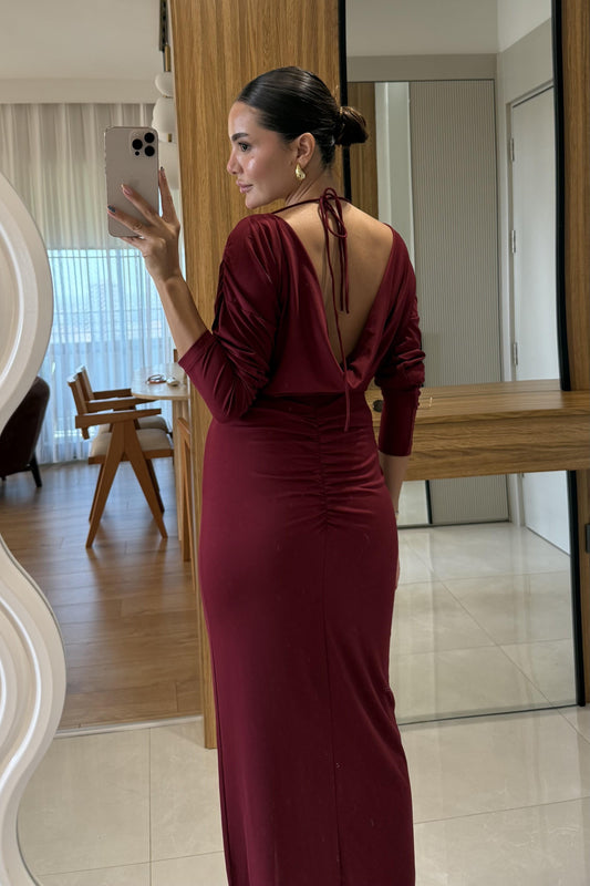 3 AL 2 ÖDETatyana Bordo Yırtmaçlı V yaka Elbise