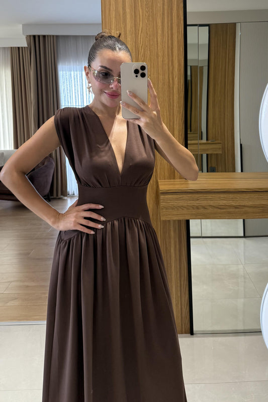 3 AL 2 ÖDETaylor Kahve Belden Oturtmalı Elbise