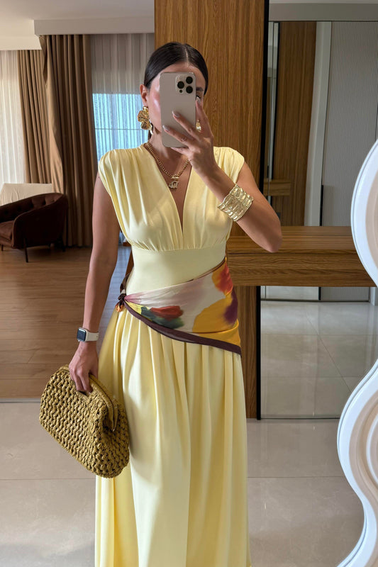 3 AL 2 ÖDETaylor Sarı Belden Oturtmalı Elbise
