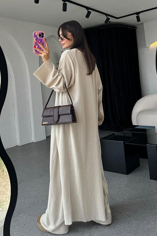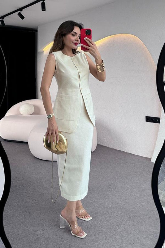 3 AL 2 ÖDETricia Premium Etekli Keten Takım-Ekru