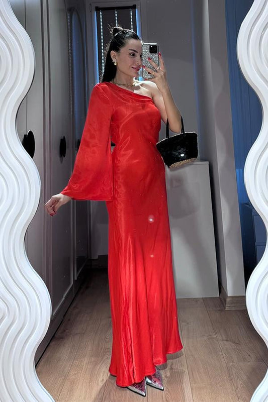 3 AL 2 ÖDETremblay Tek Omuz Kırmızı Saten Elbise