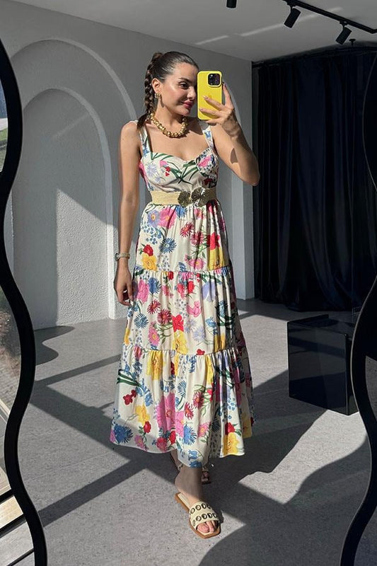 3 AL 2 ÖDETrisha Çiçek Desenli Kalın Askılı Elbise