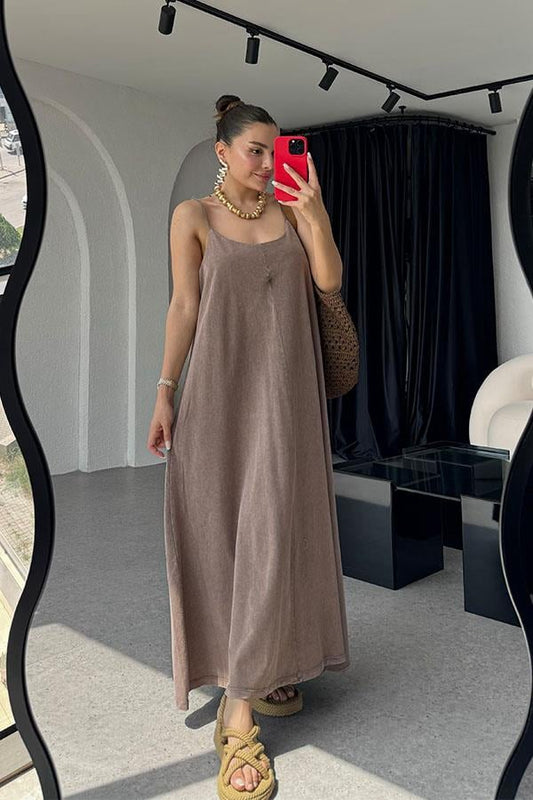 3 AL 2 ÖDETuala Asit Yıkama Elbise - Acı Kahve