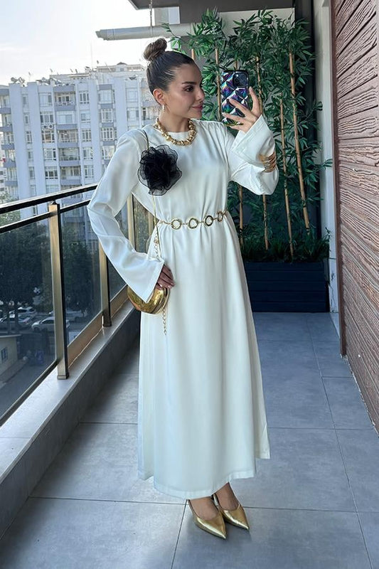 3 AL 2 ÖDETually Vatkalı Astarlı Ekru Saten Elbise