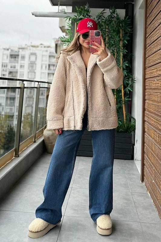 3 AL 2 ÖDEBescobel Bej Teddy Kısa Kaban