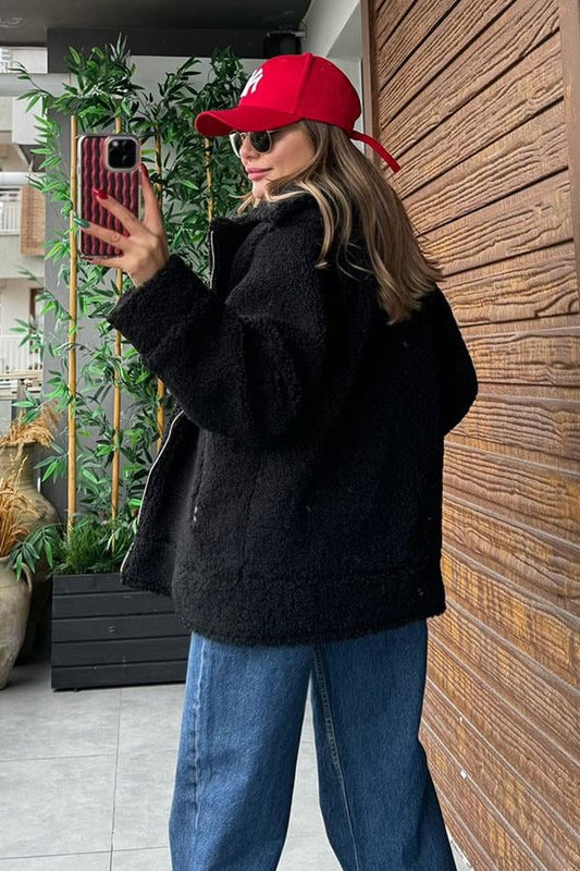 3 AL 2 ÖDEBescobel Siyah Teddy Kısa Kaban