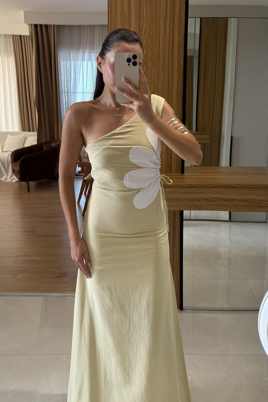3 AL 2 ÖDEBetter Sarı Keten Astarlı Çiçekli Elbise
