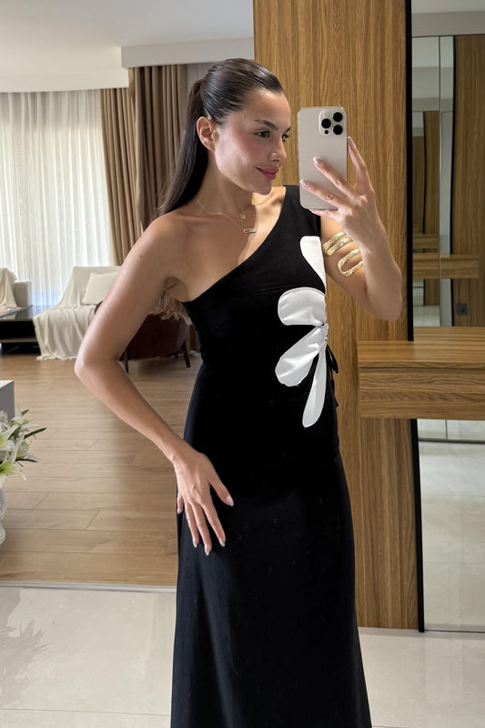 3 AL 2 ÖDEBetter Siyah Keten Astarlı Çiçekli Elbise