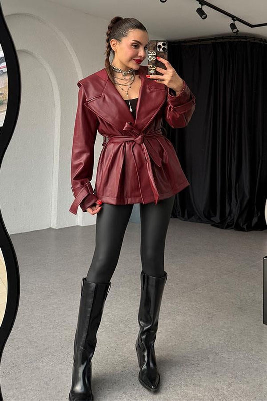 3 AL 2 ÖDEBexley Bordo Kapüşonlu Deri Ceket