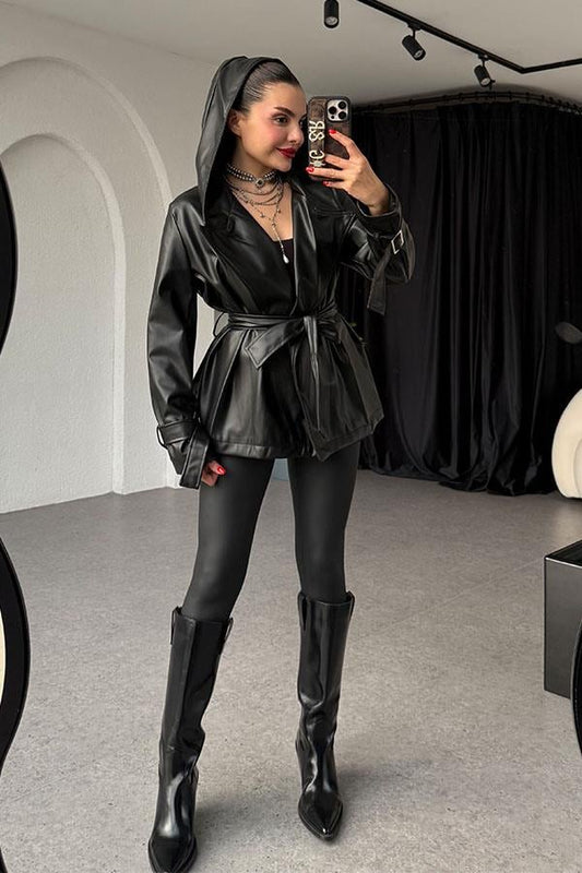 3 AL 2 ÖDEBexley Siyah Kapüşonlu Deri Ceket