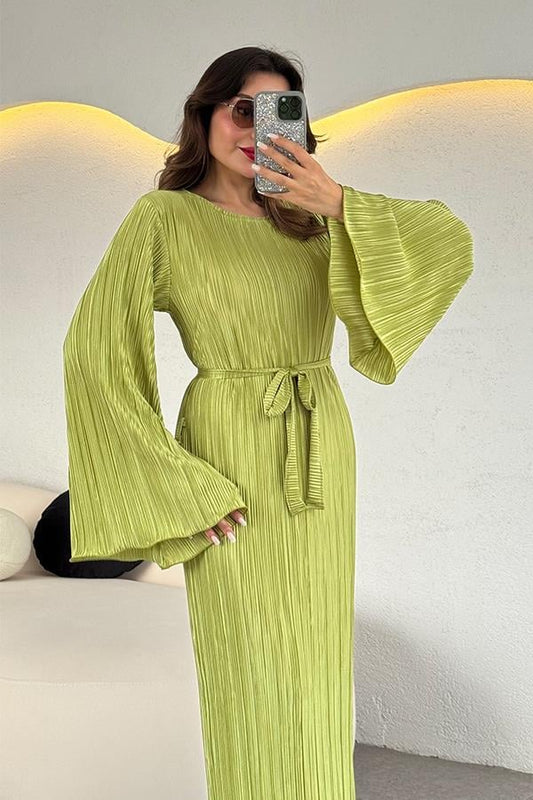 3 AL 2 ÖDEValdes Astarlı Kırinkıl Elbise - Yağ Yeşil