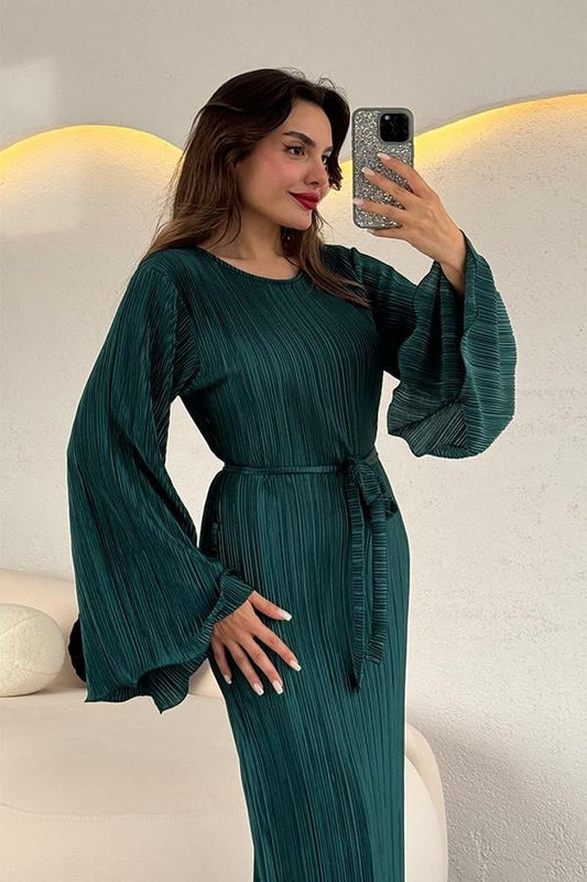 3 AL 2 ÖDEValdes Astarlı Kırinkıl Elbise - Zümrüt