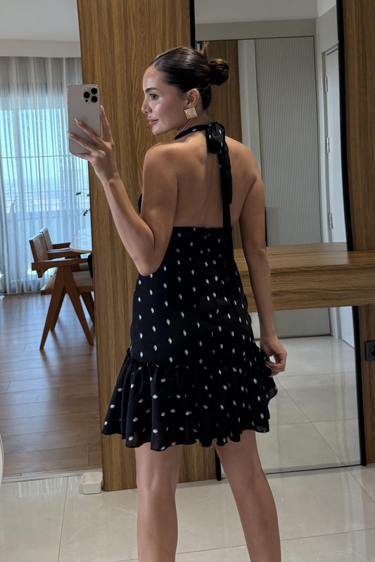 3 AL 2 ÖDEValery Siyah Gold Detaylı Puantiye Elbise