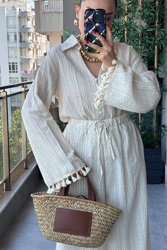 Viva Kolları Püsküllü Gömlek Pantolon Takım - EkruNormal fiyat 749.00TLİndirimli fiyat 749.00TL Normal fiyatBirim fiyat /1,350.00TL44%