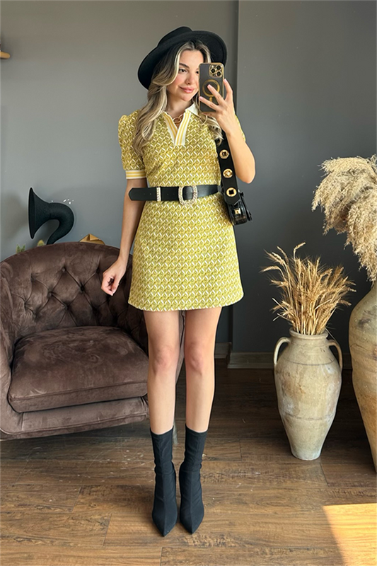 Viyana Cep Detaylı Premium Etek-Crop Takım-Sarı