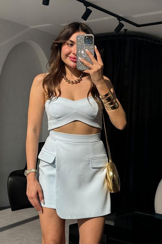 Viyana Cep Detaylı Premium Etek-Crop Takım-Bebe Mavisi