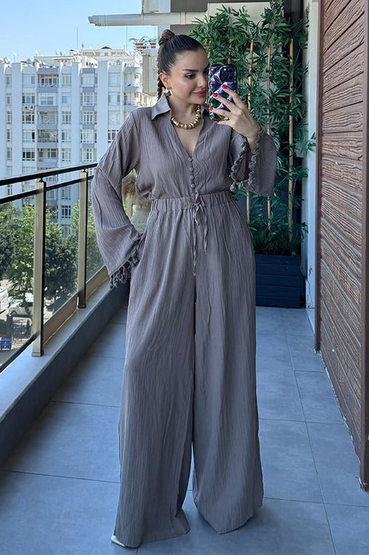 Viva Kolları Püsküllü Gömlek Pantolon Takım - Vizon