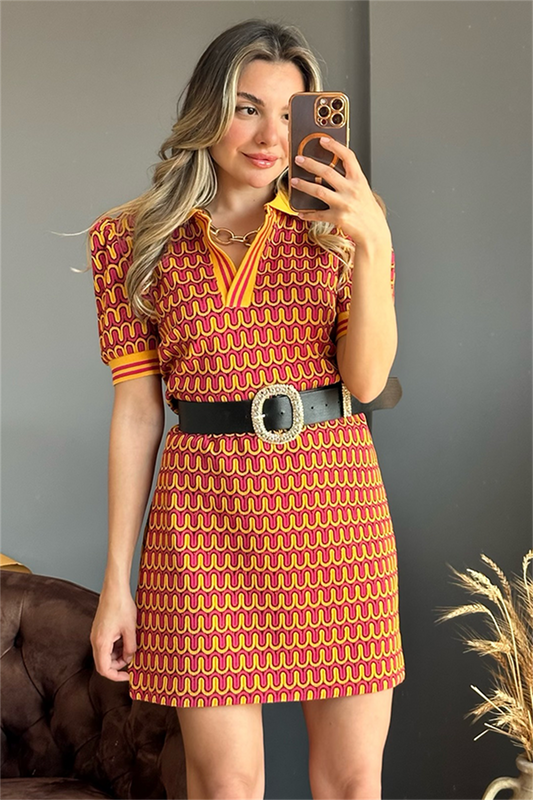 Vivenra karpuz kol sarı geçişli romantik elbise