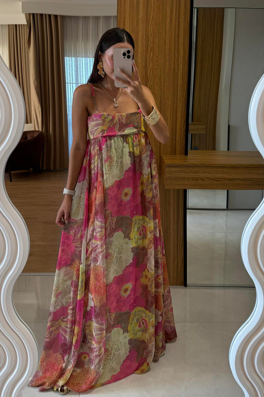 3 AL 2 ÖDEWiole Çiçek Desen Askılı Şifon Elbise