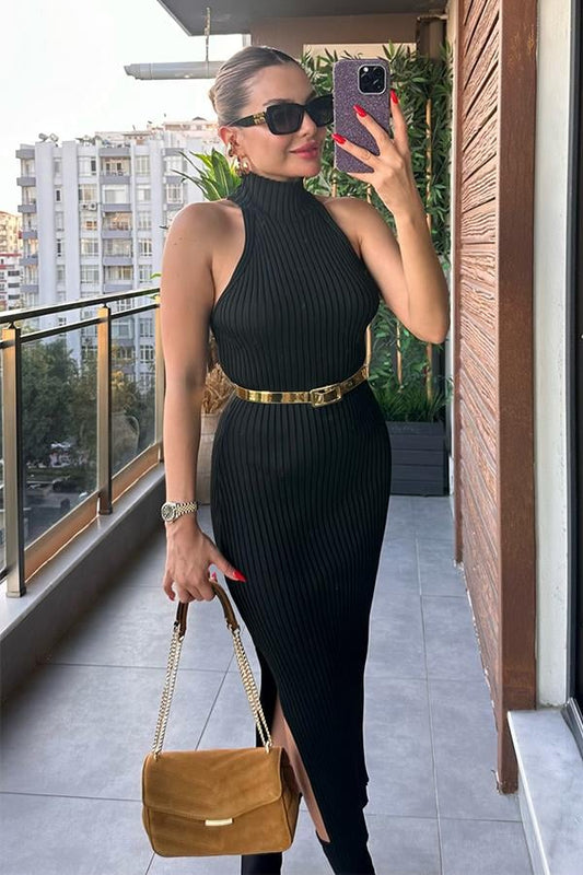 3 AL 2 ÖDEWolans Yarım Balıkçı Süveter Elbise - Siyah