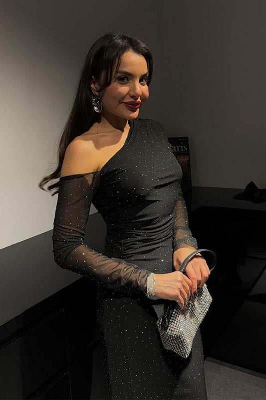 3 AL 2 ÖDEWonder Tek Omuz Taşlı Tül Elbise