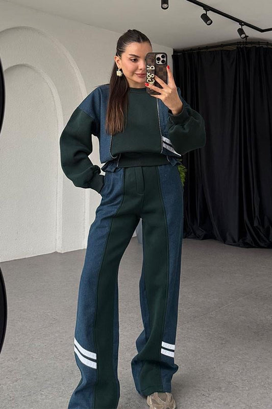 Ximena Haki Üç İplik Şardonlu Denim Karışımlı Takım