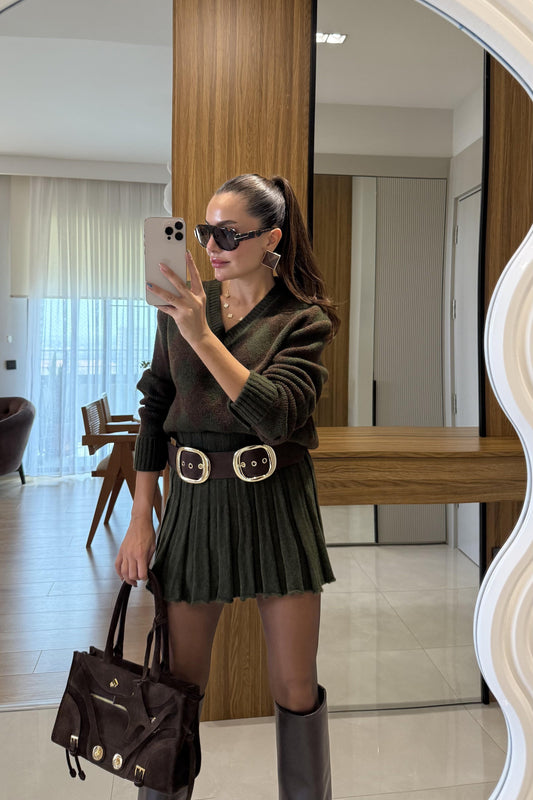 3 AL 2 ÖDEWoody Haki-Kahve Baklava Desen Etekli Takım