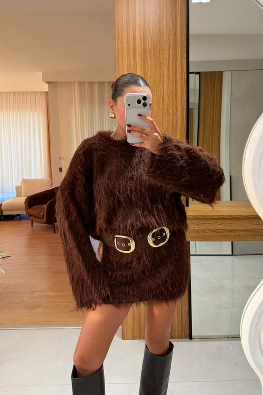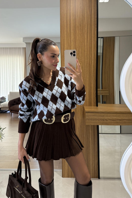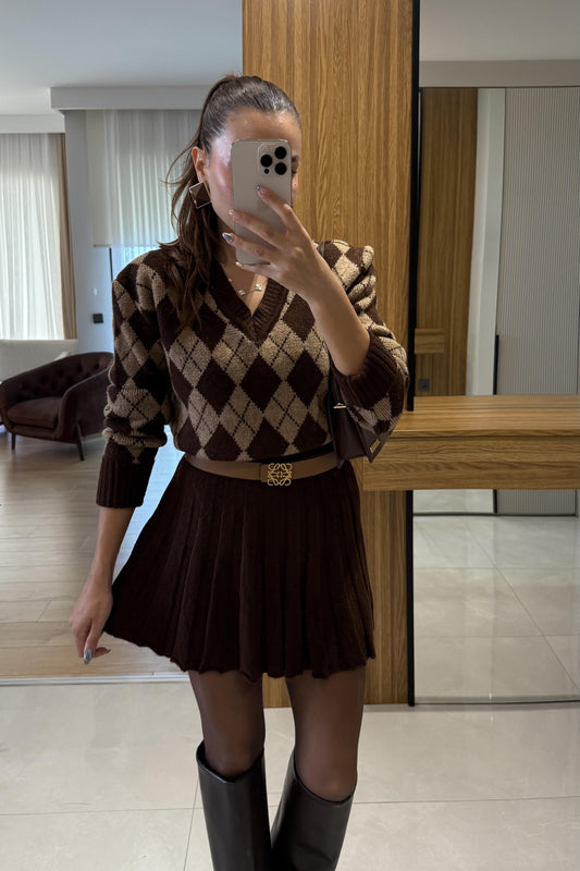 3 AL 2 ÖDEWoody Kahve-Vizon Baklava Desen Etekli Takım