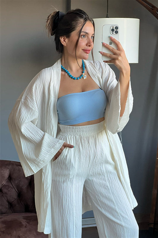 3 AL 2 ÖDEBeyaz kimonolu bohem takım
