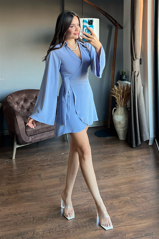 Yarasa kol yandan bağlamalı bebe mavisi elbise