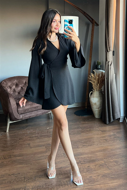 3 AL 2 ÖDEYarasa kol yandan bağlamalı siyah elbise