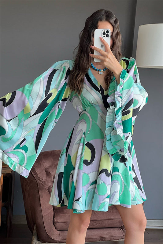 3 AL 2 ÖDEYeşil Batik Desen Tül Elbise