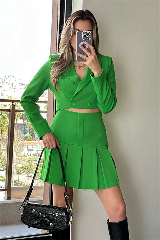 3 AL 2 ÖDEYeşil etekli pileli ikili takım