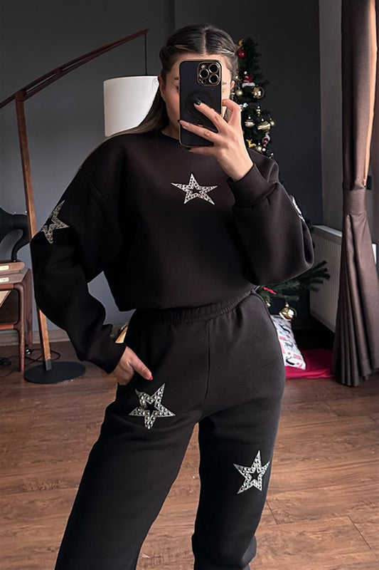 3 AL 2 ÖDEYıldız taş baskılı siyah eşofman takımı