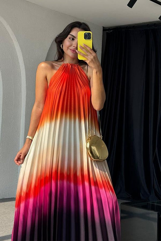 3 AL 2 ÖDEZemira Halter Yaka Piliseli Renkli Elbise