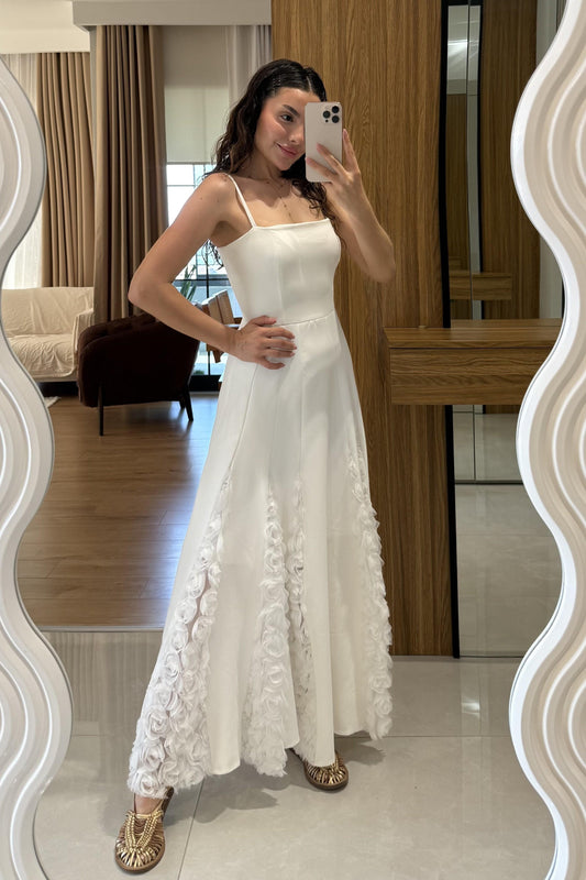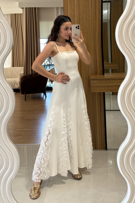 3 AL 2 ÖDEZerine Beyaz Etek Ucu Üç Boyutlu Elbise