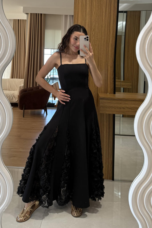 3 AL 2 ÖDEZerine Siyah Etek Ucu Üç Boyutlu Elbise