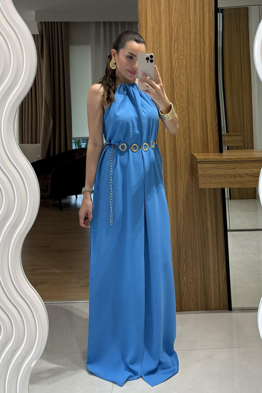 3 AL 2 ÖDEZylen Mavi Boyundan Kolyeli Elbise