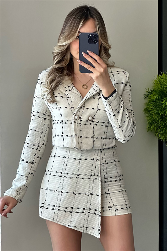3 AL 2 ÖDEBeyaz tüvit crop ceket ikili takım