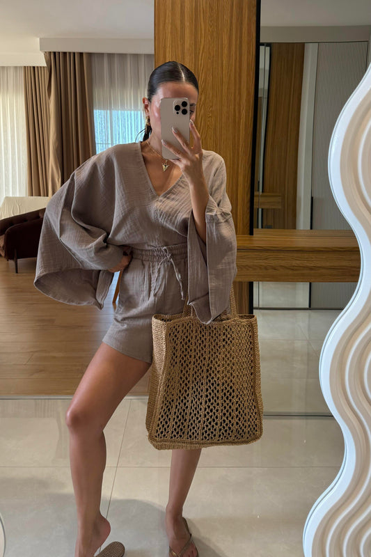 3 AL 2 ÖDEBiana Kahve Müslin Yarasa Kol Takım